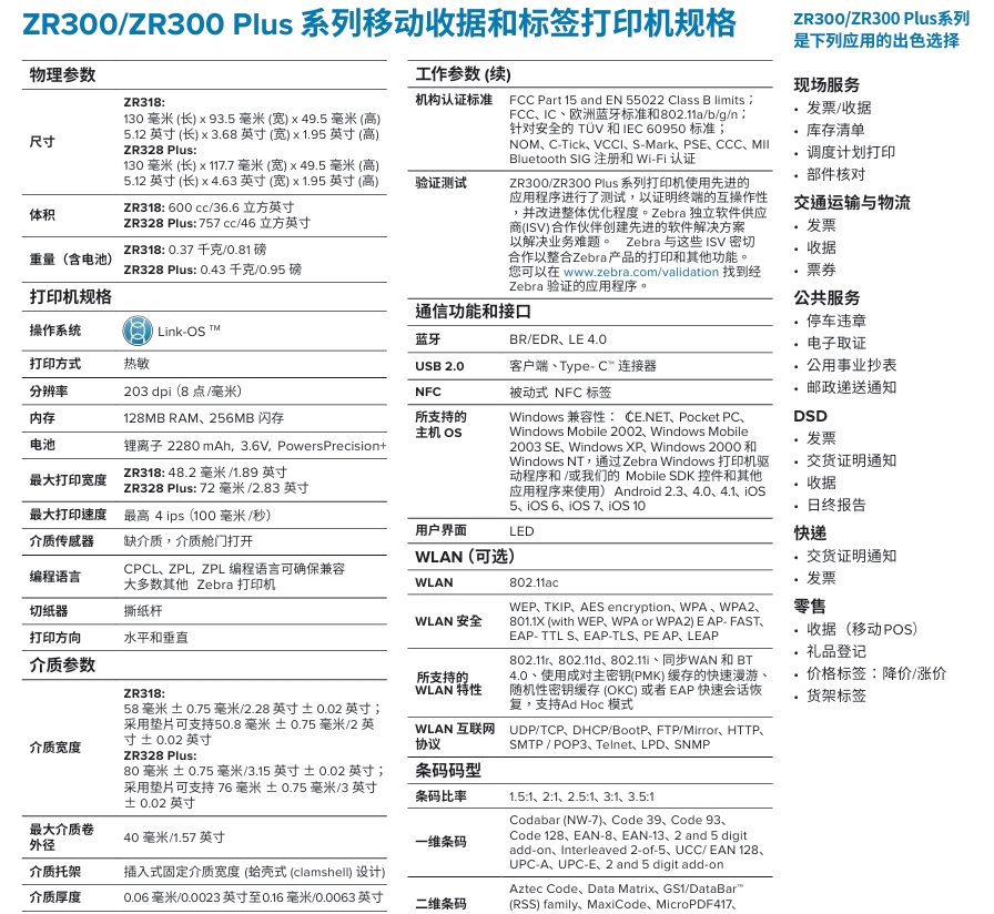 斑马ZR318/ZR328便携式打印机
