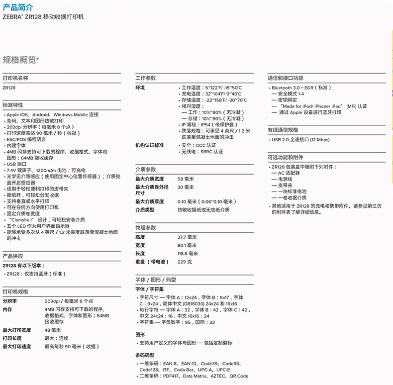 斑马ZR128便携式打印机