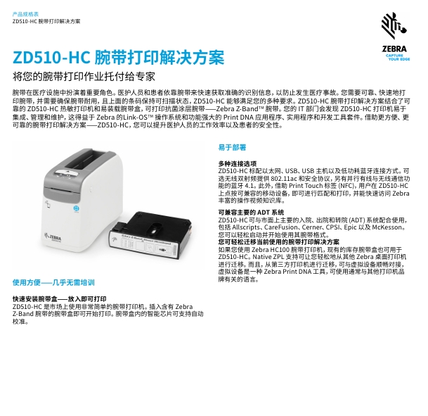 斑马ZD510-HC医疗腕带打印机