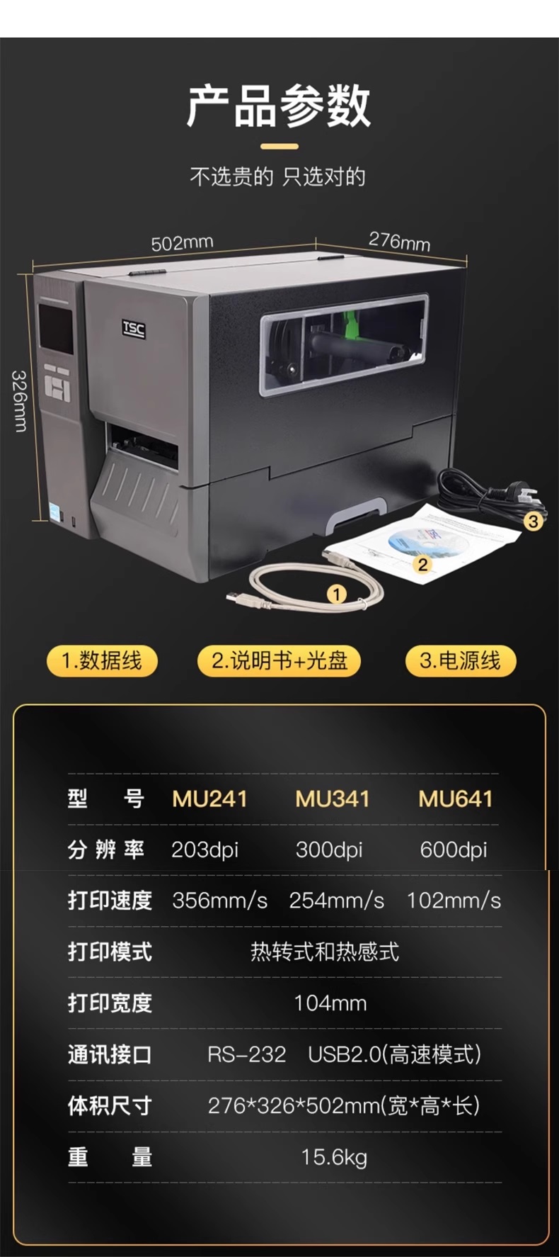 TSC MH241/341/641 600dpi条码工业切刀标签打印机