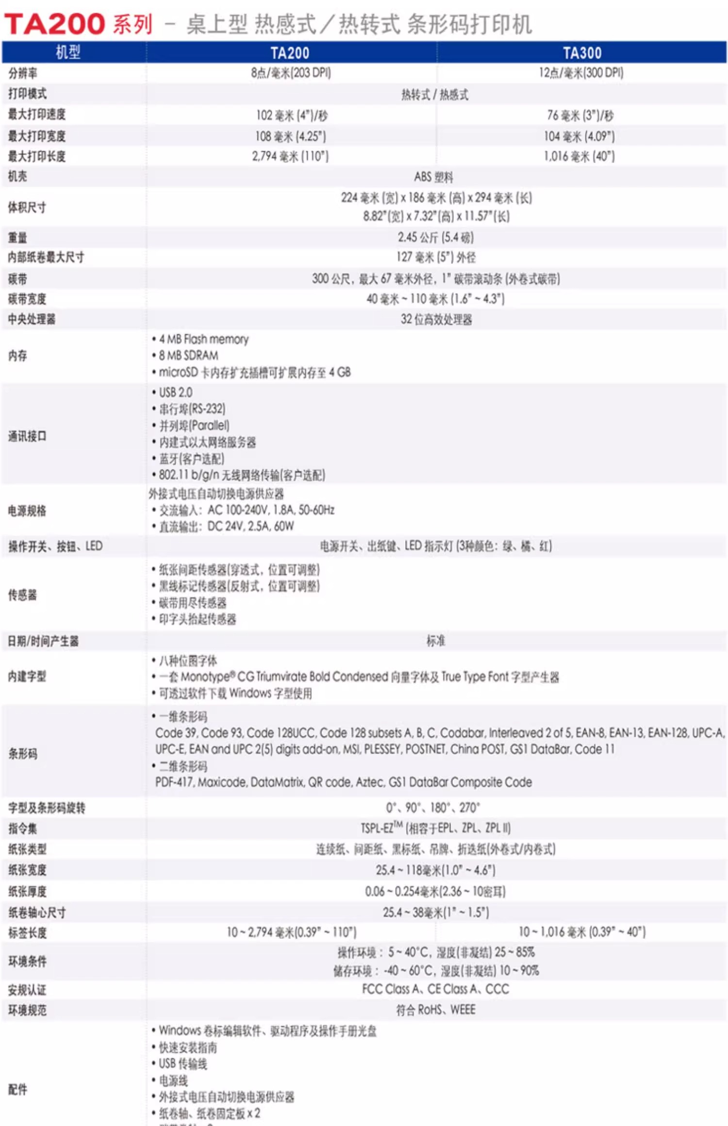 TSC T300A/T200A标签打印机