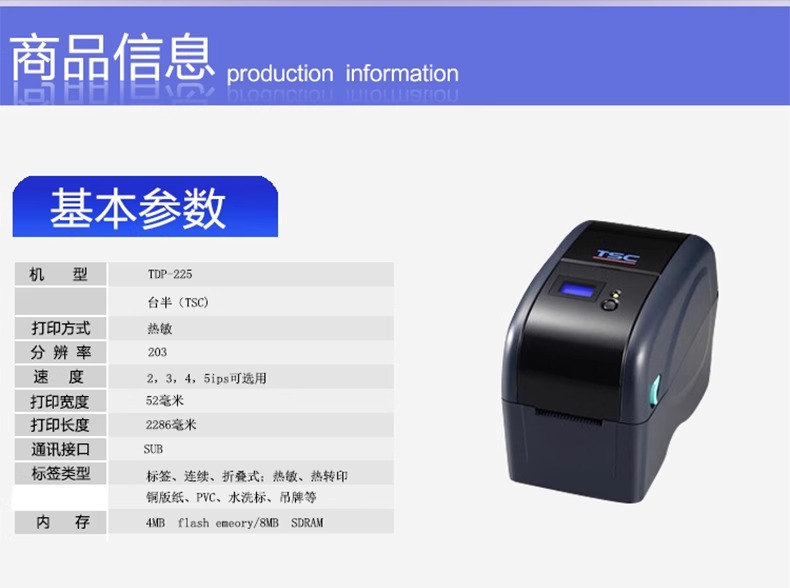 TSC TDP-225热敏式腕带打印机(USB口+串口)
