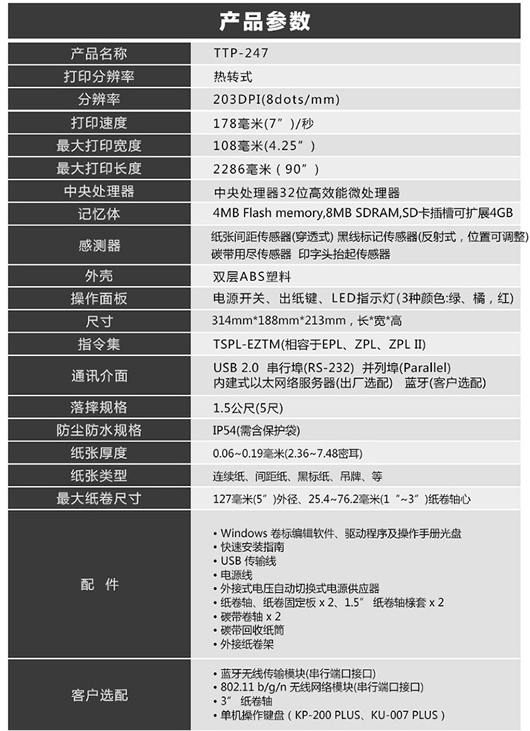 TSC TTP-247/345条码打印机