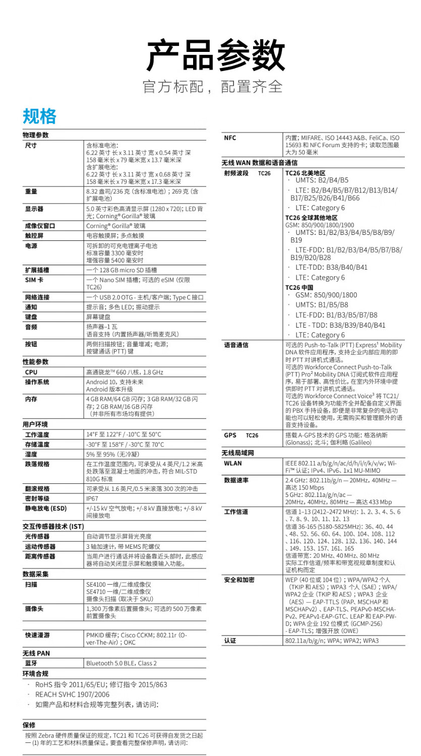 斑马 TC21/TC26 TC210K TC26CK数据采集器