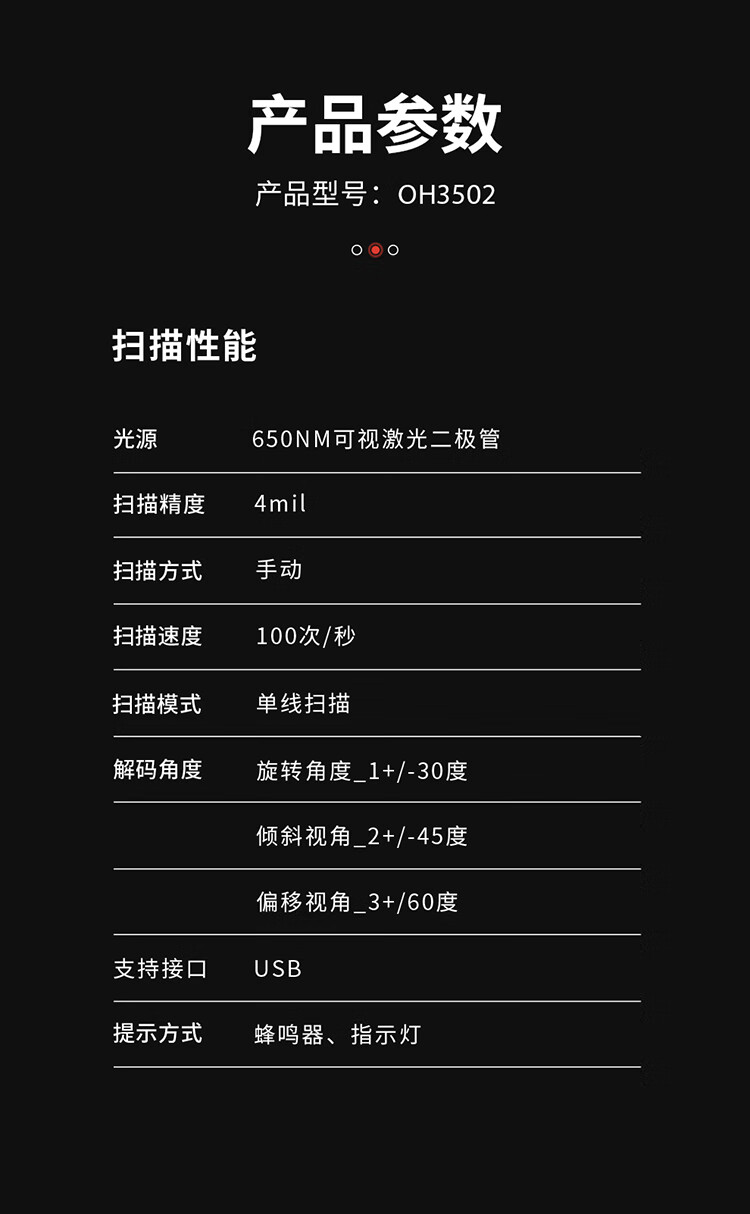 霍尼韦尔 OH3502黑扫码枪