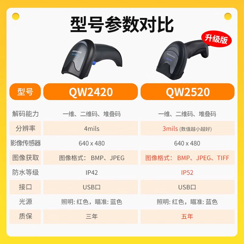 得利捷 QW2520(二维有线)USB口扫描枪