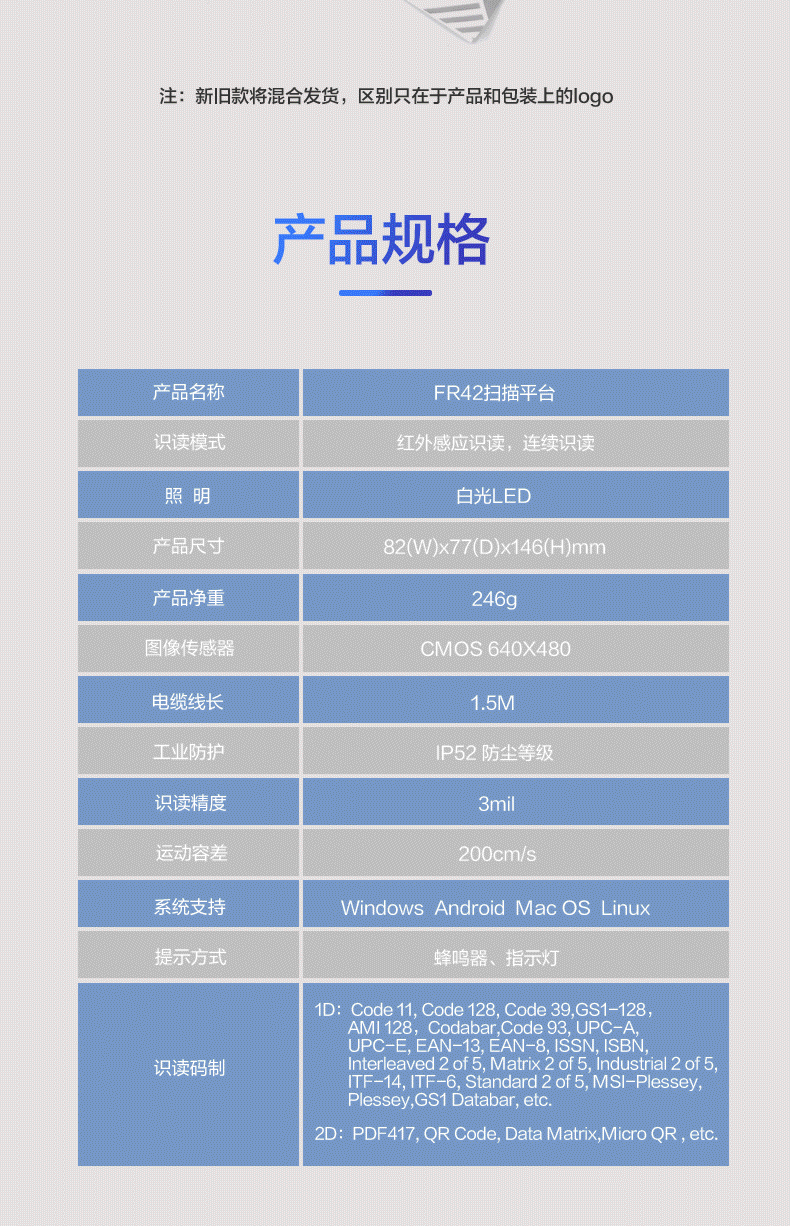 新大陆FR42桌面红光扫码枪